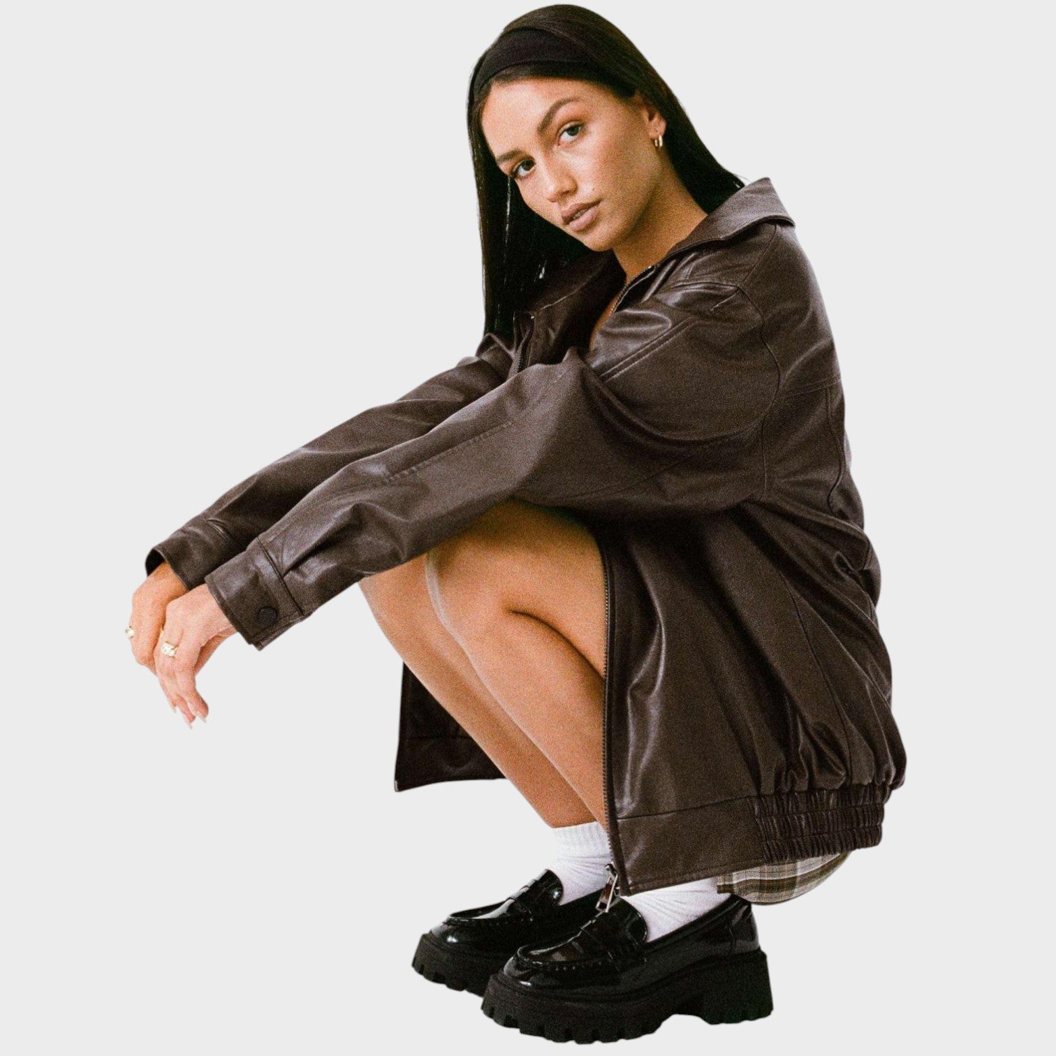 • Ajuste elegante: O ajuste solto deste casaco de cabedal oferece conforto, mantendo-se chique e na moda - ideal para usar por cima de qualquer roupa.